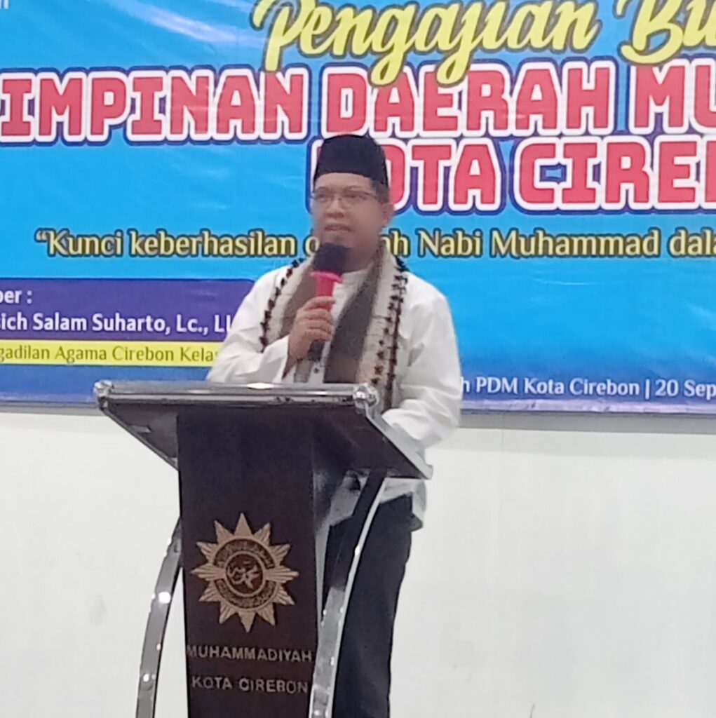 CIREBON, 20 September 2025. Majelis Tabligh Pimpinan Daerah Muhammadiyah (PDM) Kota Cirebon kembali menggelar pengajian bulanan yang dilaksanakan pada hari Sabtu, 20 September 2025, bertempat di Gedung Dakwah Muhammadiyah Kota Cirebon. Kegiatan ini menghadirkan penceramah Dr. H. Nasich Salam Suharto, Lc., LLM., yang saat ini menjabat sebagai Kepala Pengadilan Agama Kota Cirebon kelahiran Yogyakarta. Pengajian ini dihadiri oleh Ketua Pimpinan Daerah Muhammadiyah Kota Cirebon Drs. Puji Nirmo dan jajaran pemimpin lainnya.