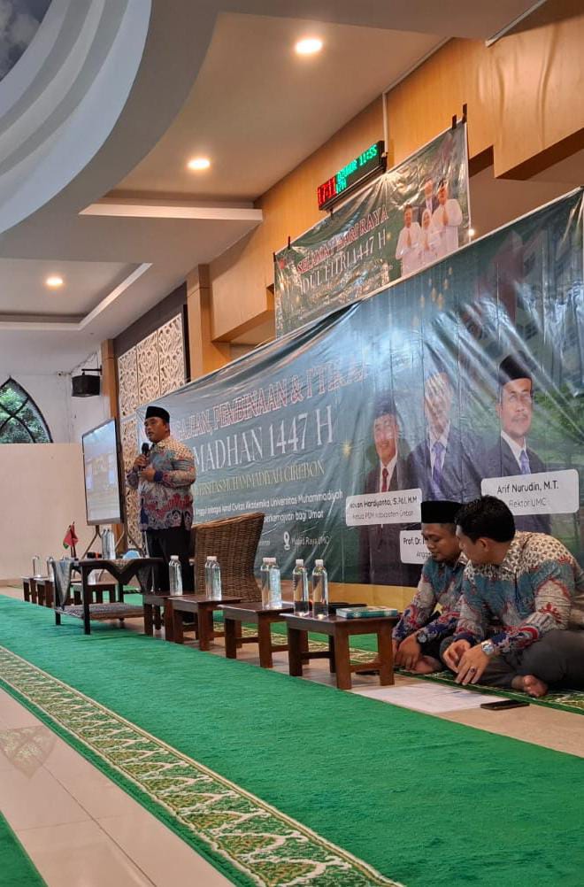 Cirebon, 14 Maret 2026 – Universitas Muhammadiyah Cirebon (UMC) menggelar acara Pengajian, Pembinaan, dan I’tikaf bagi dosen dan tenaga kependidikan (tendik) di lingkungan kampus. Kegiatan yang berlangsung khidmat ini menghadirkan penceramah Ketua Pimpinan Daerah Muhammadiyah (PDM) Kabupaten Cirebon, Ustadz Novan Hardiyanto, M.M., yang menyampaikan tausiyah tentang keberkahan, pentingnya ilmu, dan objektivitas dalam memahami perbedaan ibadah.