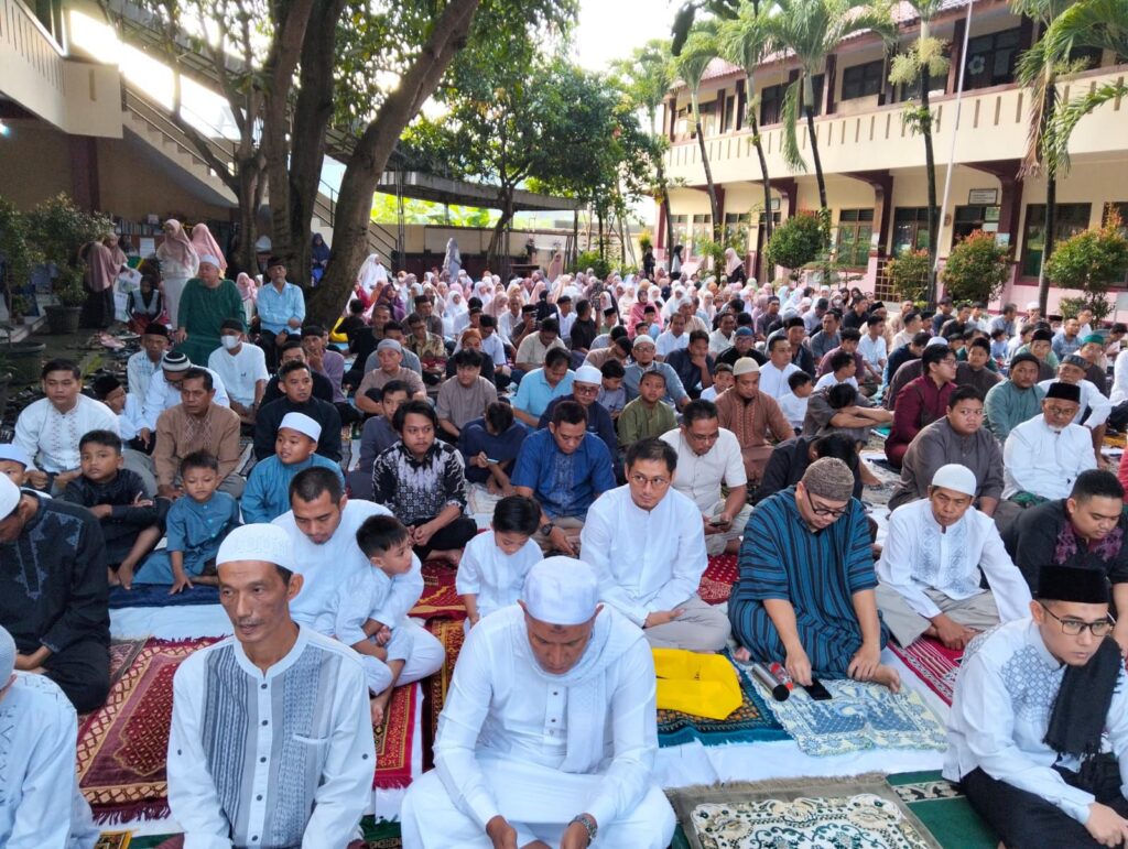 CIREBON, 20 Maret 2026 – Ribuan jamaah memadati halaman kampus SDIT Muhammadiyah Harjamukti, Kota Cirebon, pada pelaksanaan Salat Idul Fitri 1447 H, Jumat (20/3/2026). Suasana khidmat dan penuh syukur menyelimuti jamaah yang datang sejak pagi untuk menunaikan shalat sunnah Idul Fitri setelah sebulan penuh berpuasa di bulan Ramadhan.