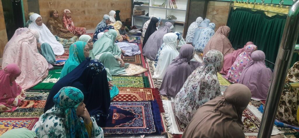 Jamaah yang memadati masjid hingga halaman tampak khusyuk menyimak tausiyah yang mengajak mereka merenungkan betapa besar nikmat Allah Subhanahu Wa Ta’ala yang telah mempertemukan mereka kembali dengan bulan suci Ramadhan.