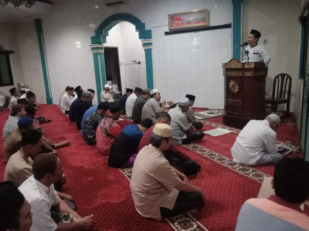 Jamaah yang memadati masjid tampak khusyuk menyimak tausiyah yang mengupas tentang jaminan pertolongan Allah bagi hamba-Nya serta karakteristik umat yang akan mendapatkan pertolongan tersebut.