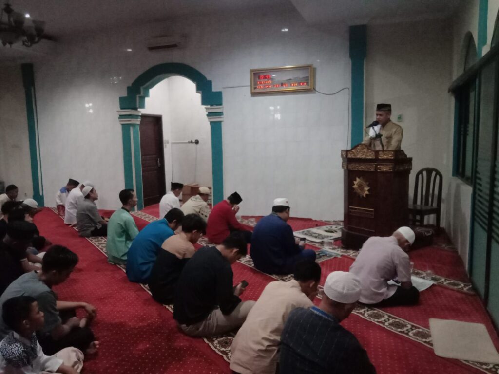 Jamaah tampak khusyuk menyimak tausiyah yang mengupas tentang hakikat takwa melalui percakapan inspiratif antara dua sahabat agung, Umar bin Khattab dan Ubay bin Ka’ab.